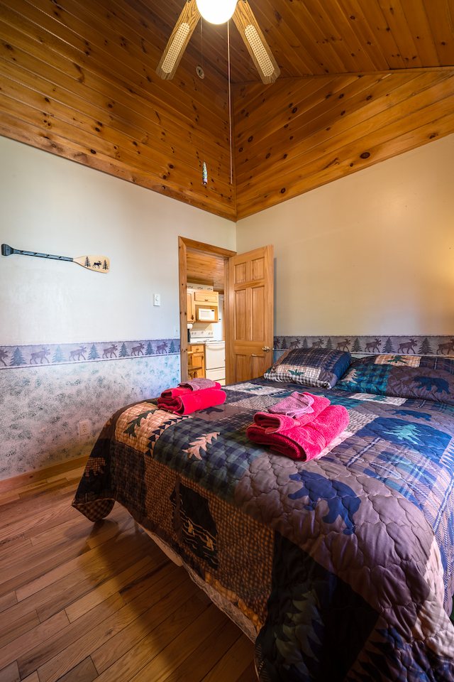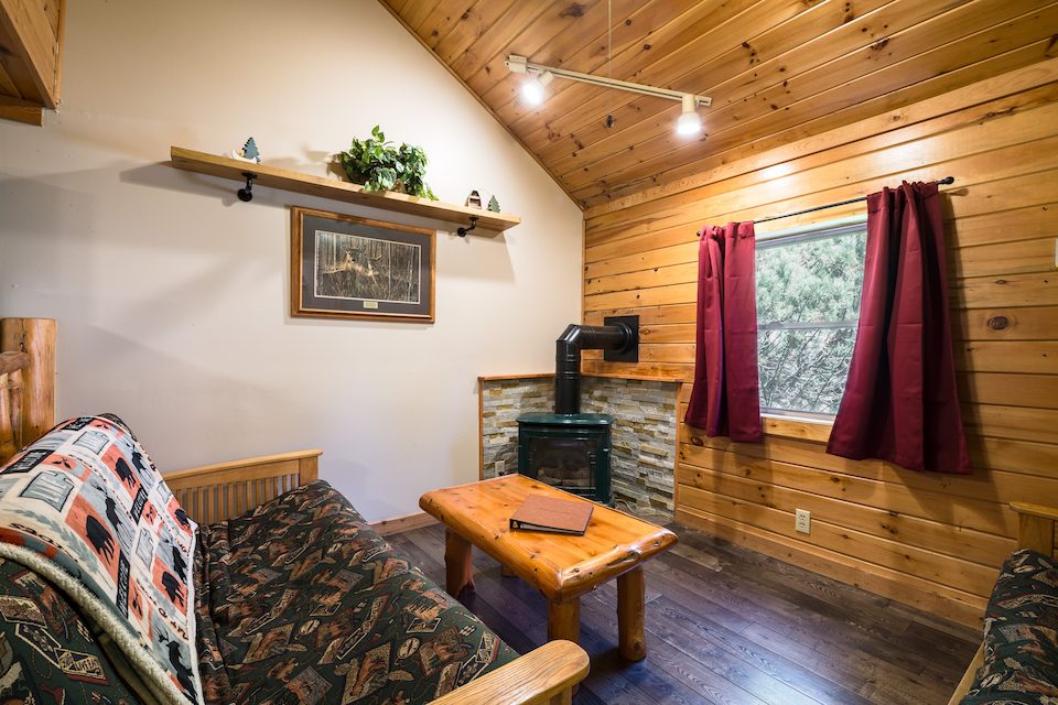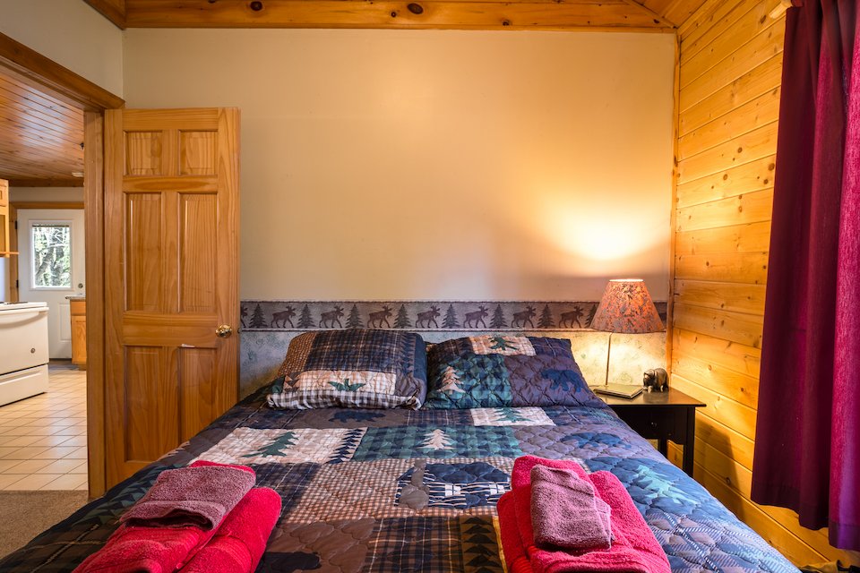 Beautifully appointed with classic Northwoods décor, Moose Ridge feels like your own private retreat. The cabin features a cozy private bedroom with a queen-sized bed, plus a pullout bed in the living room to accommodate extra guests. You’ll find a fully equipped kitchen, a bathroom with a shower, and a warm, inviting living area complete with a gas fireplace.
