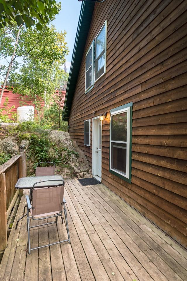 Angler and Paddler are spacious lodge hideaways with direct access into the BWCAW for day trips. They are perfect for people who want to fish on Saganaga or canoe the BWCA Wilderness during the day and relax in comfort at night. Each unit is tastefully decorated in northwoods décor. The lodge units are just like individual cabins with private access from the deck. Each unit has a private bedroom with a queen-sized bed and a loft with three twin beds. There is a full kitchen, bathroom with shower, living room with a gas fireplace and a whirlpool bathtub in the loft. There is also a futon sofa sleeper in the living room. There is a wrap around deck with patio furniture and a dock for your use while staying in the lodge.